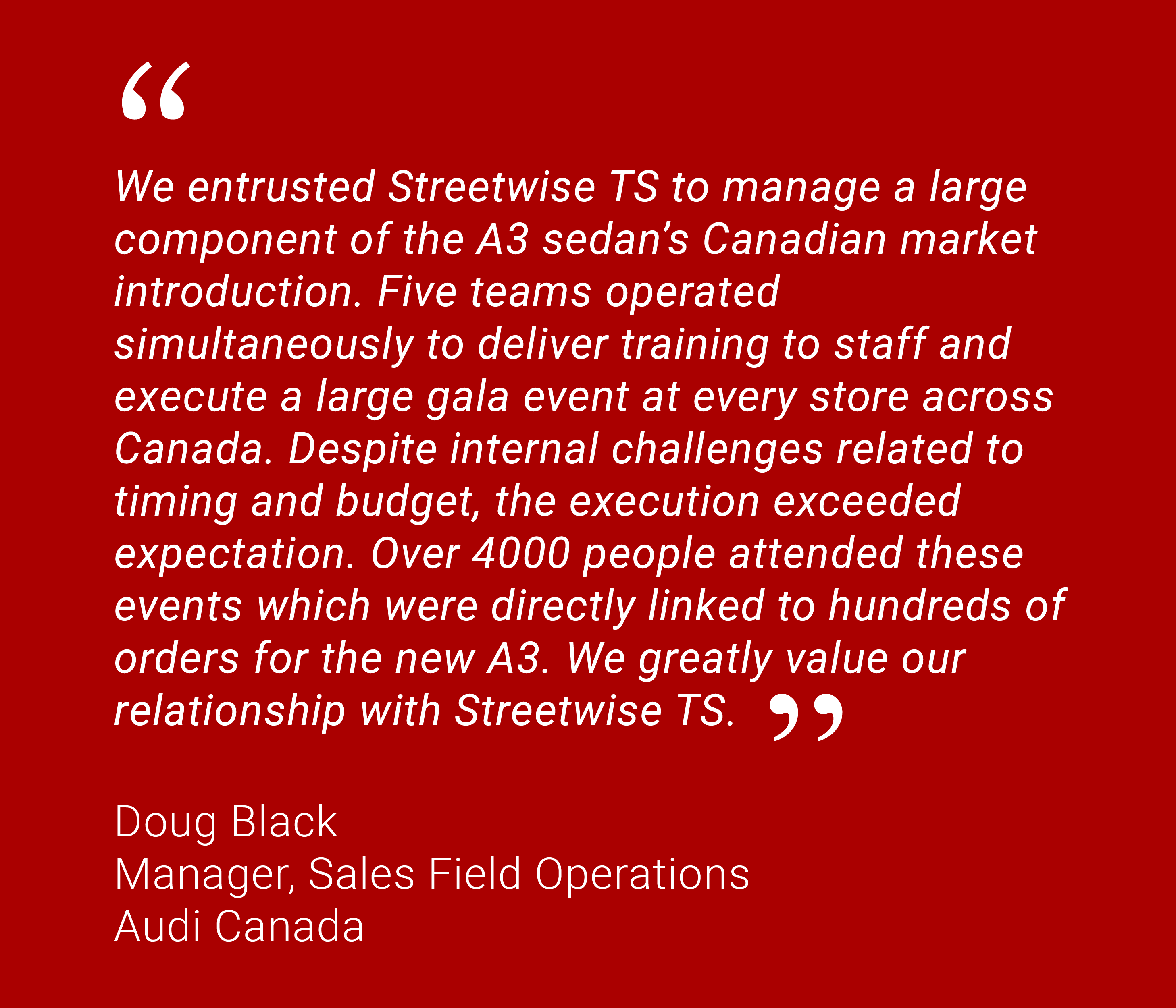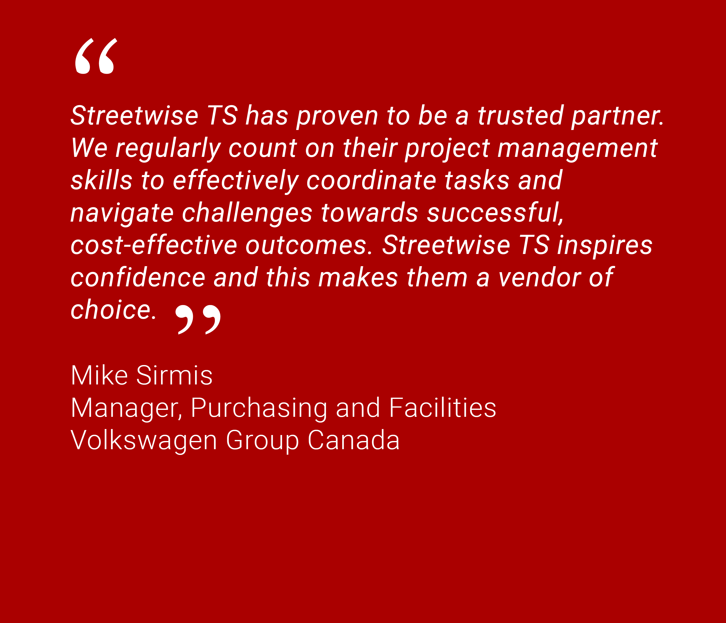 Streetwise TS assists to keep the project on schedule and on budget. Our goal is be flexible and diverse in our service offering, and to adapt to our partners’ needs, whatever those needs may be.